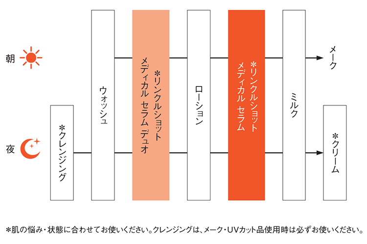 リンクルショットの2つの美容液で、均一なハリ・弾力のあるふっくらベールをまとう。