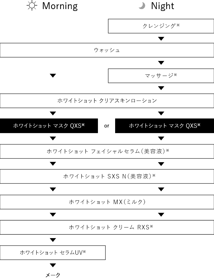 - ホワイトショット マスク QXSは、朝または夜のどちらかにお使いください。