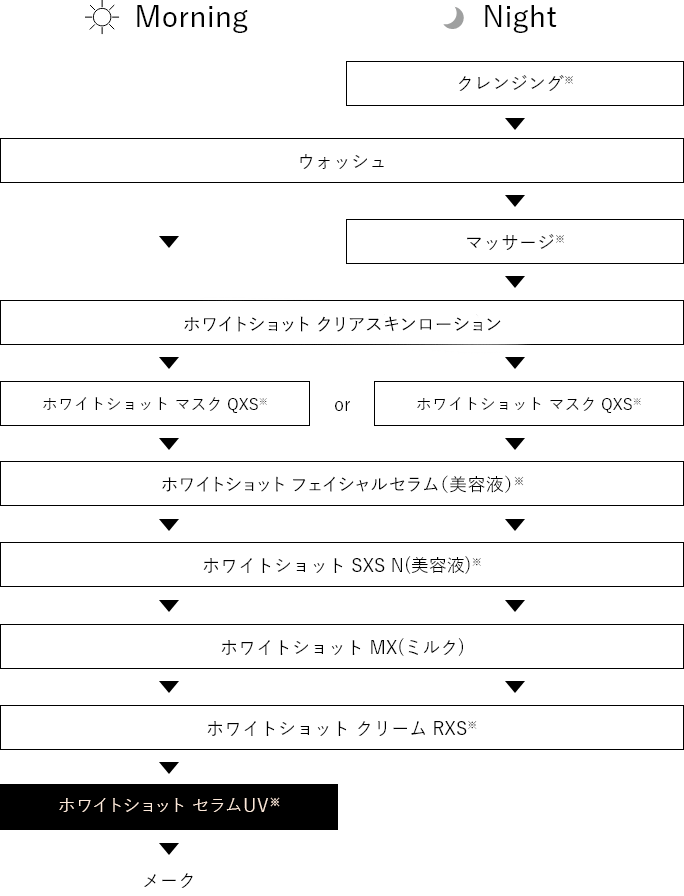 • ホワイトショット マスク QXSは、朝または夜のどちらかにお使いください。