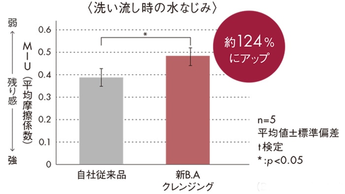 自社従来品と比較して、洗い流し時の水なじみ*3がアップ*4。