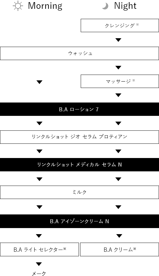 その他の成分:ジメチコン、ワセリン、架橋型ジメチコン、メタクリル酸エステル樹脂粉末、トリエチルヘキサン酸グリセリル、セリサイト、シクロペンタシロキサン、トリメチルシロキシケイ酸、水添ポリブテン、シクロヘキシルグリセリン、スクワラン、油溶性アルニカエキス、油溶性カモミラエキス、油溶性桃葉エキス、ローヤルゼリーエキス、タイムエキス-1、スギナエキス、ヒドロキシアパタイト、ラウロイルグルタミン酸ジ(フィトステリル・オクチルドデシル)、流動パラフィン、軽質イソパラフィン、トリ(カプリル・カプリン酸)グリセリル、BG、水、無水ケイ酸、酸化亜鉛、香料 - B.A ローション 7