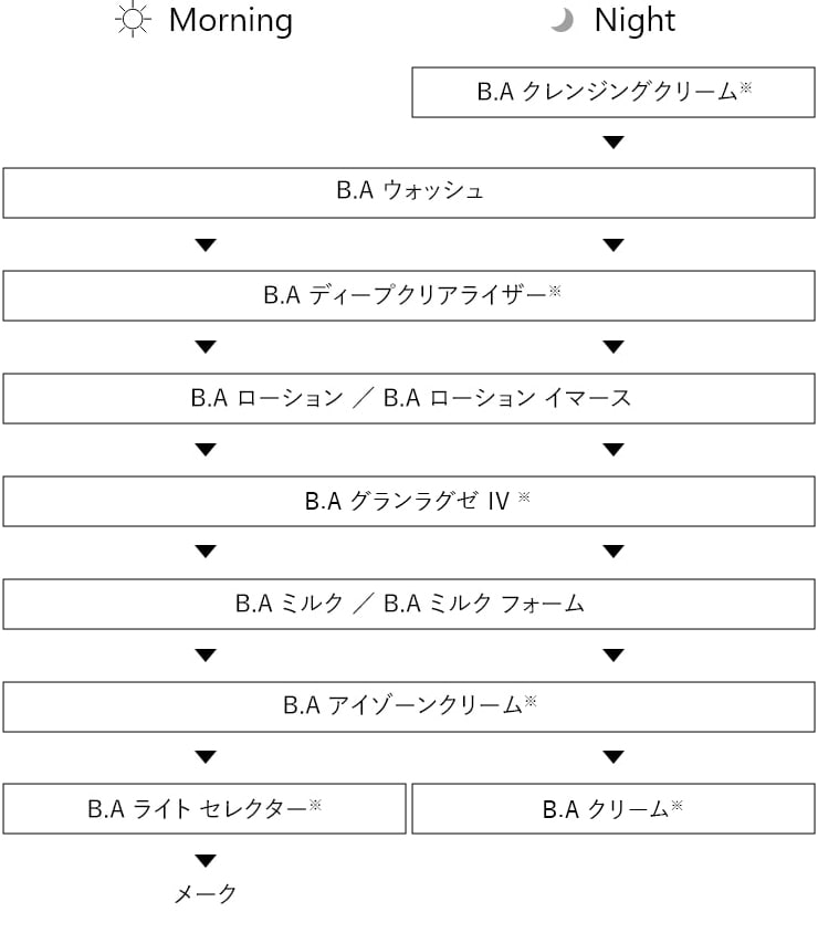 水、BG、メドウフォーム種子油、グリセリン、エチルヘキサン酸セチル、トリエチルヘキサノイン、ジグリセリン、ダイマージリノール酸(フィトステリル/イソステアリル/セチル/ステアリル/ベヘニル)、テトラエチルヘキサン酸ペンタエリスリチル、ステアリン酸、バチルアルコール、ジメチコン、ビスジグリセリルポリアシルアジペート-2、ベヘニルアルコール、セタノール、(PPG-12/SMDI)コポリマ-、アルギニン、ハマナス花エキス、マカデミアナッツ脂肪酸フィトステリル、水酸化レシチン、ダイズ油、シロキクラゲ多糖体、ジラウロイルグルタミン酸リシンNa、セージ葉エキス、ビワ葉エキス、レンゲソウエキス、ナギイカダ根エキス、セイヨウハッカ葉エキス、シストセイラタマリシホリアエキス、センニンコク種子エキス、ヨーロッパシラカバ樹皮エキス、オウレン根茎エキス、ヨモギ葉エキス、ゼイン、β-カロチン、ニンジン根エキス、シコニン、トリ(カプリル酸/カプリン酸/ミリスチン酸/ステアリン酸)グリセリル、水添アブラナ種子油、PEG-32、PEG-6、ステアリン酸PEG-150、パルミチン酸セチル、ラウリルPEG-10トリス(トリメチルシロキシ)シリルエチルジメチコン、ダイマージリノール酸ジ(イソステアリル/フィトステリル)、PEG-400、エタノール、トリ(カプリル酸/カプリン酸)グリセリル、レシチン、パルミチン酸、マイクロクリスタリンワックス、トコフェロール、水酸化K、イソステアリン酸ソルビタン、ポリステアリン酸スクロース、ローカストビーンガム、オレイン酸ポリグリセリル-2、クエン酸、グリコール酸、クオタニウム-90ベントナイト、シリカ、フェノキシエタノール、メチルパラベン、香料
